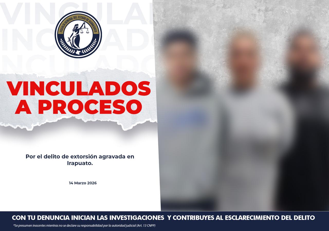 Irapuato, Gto.,- Derivado de un sólido trabajo de investigación encabezado por la Unidad Especializada en Combate al Delito de Extorsión, se obtuvo la vinculación a proceso penal en contra de JESÚS EDUARDO “N”, MARTHA ALEJANDRA “N” e ISAÍ “N”, integrantes del grupo delictivo.