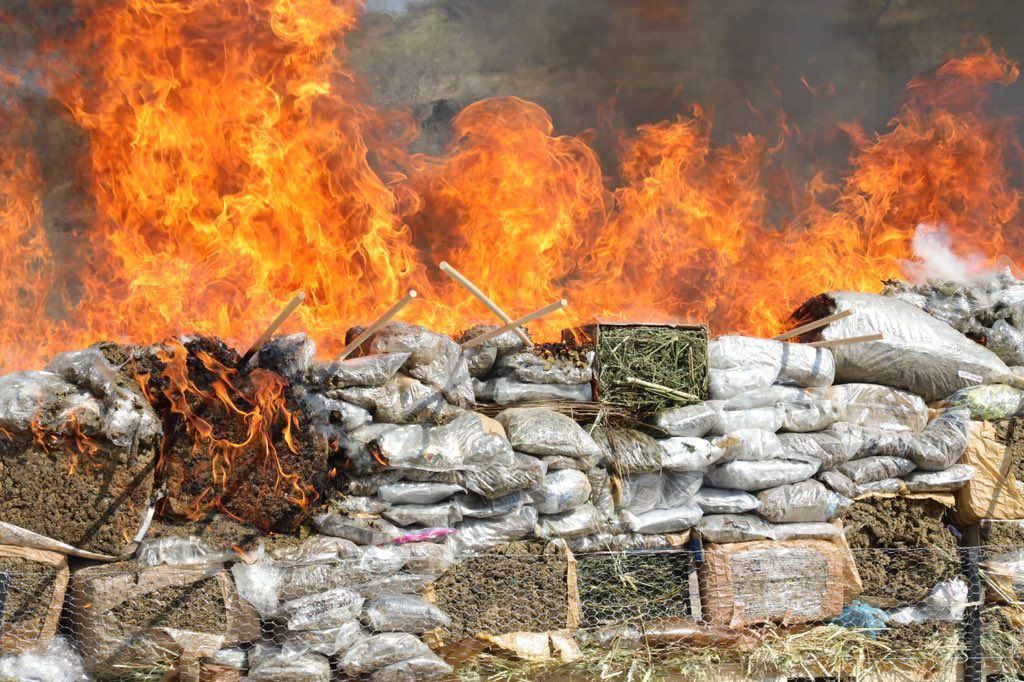 La eliminación de estas sustancias implica retirar de las calles más de mil kilogramos de marihuana, así como diversas cantidades de metanfetaminas y cocaína, lo que equivale a más de dos millones de dosis que no llegarán a la población.